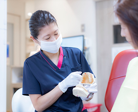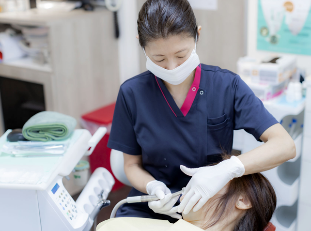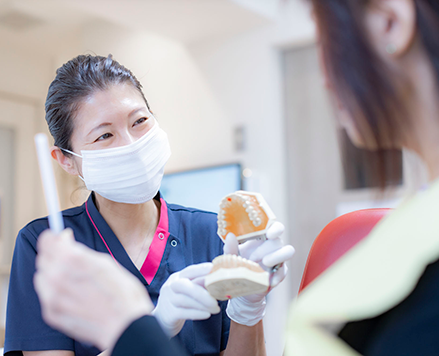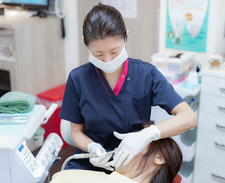 振動の少ない電動麻酔やYAGレーザーを使用することによって、痛みを抑えた治療を行なっております。 また予防においてもYAGレーザーを活用し、病原菌を減らします。定期的に検診を受け、「治療する」だけではなく、「予防する」ことも大切です。