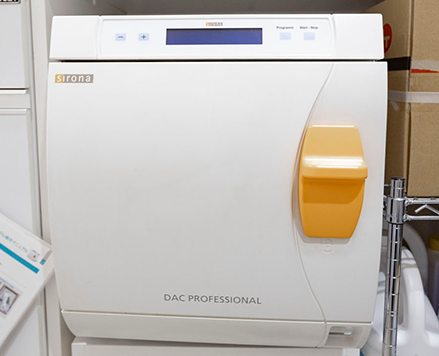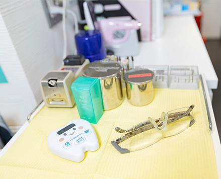 スタッフや患者さまの手指消毒だけでなく、手すりやイスなど不特定多数の方が触れる箇所も定期的に除菌を行っております。またすべての医療器具は滅菌処理を行い、滅菌パックにて保管しています。