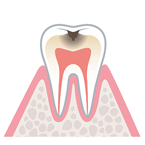 そのままにしていると歯髄(歯の神経)まで達してしまうので、これ以上進めないことが重要です。冷たいものを飲食した際に歯がしみる、痛むなど、自覚症状が出るようになります。