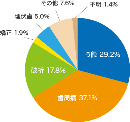 昨今では歯周病は虫歯よりも歯を失う理由で取りだたされることも増え、歯周病で歯を失うリスクを抑える重要性がうかがえます。
