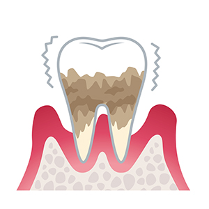 歯周病はお口の中にある原因菌(歯周病原細菌)が歯と歯茎の間で増殖し、炎症、および歯を支える骨を溶かし、最悪のケースは歯の欠落にいたる可能性もある危険な病気です。