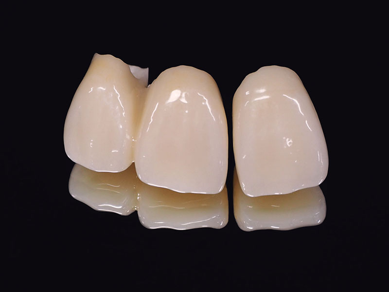 金属を全く使用せず、内部分も金属ではなくセラミックで作製するため、同一素材のため透明感があり、長年の使用でも吸水や着色、変形の心配もありません。セラミック特有の自然な色合いの歯の白さを再現できます。